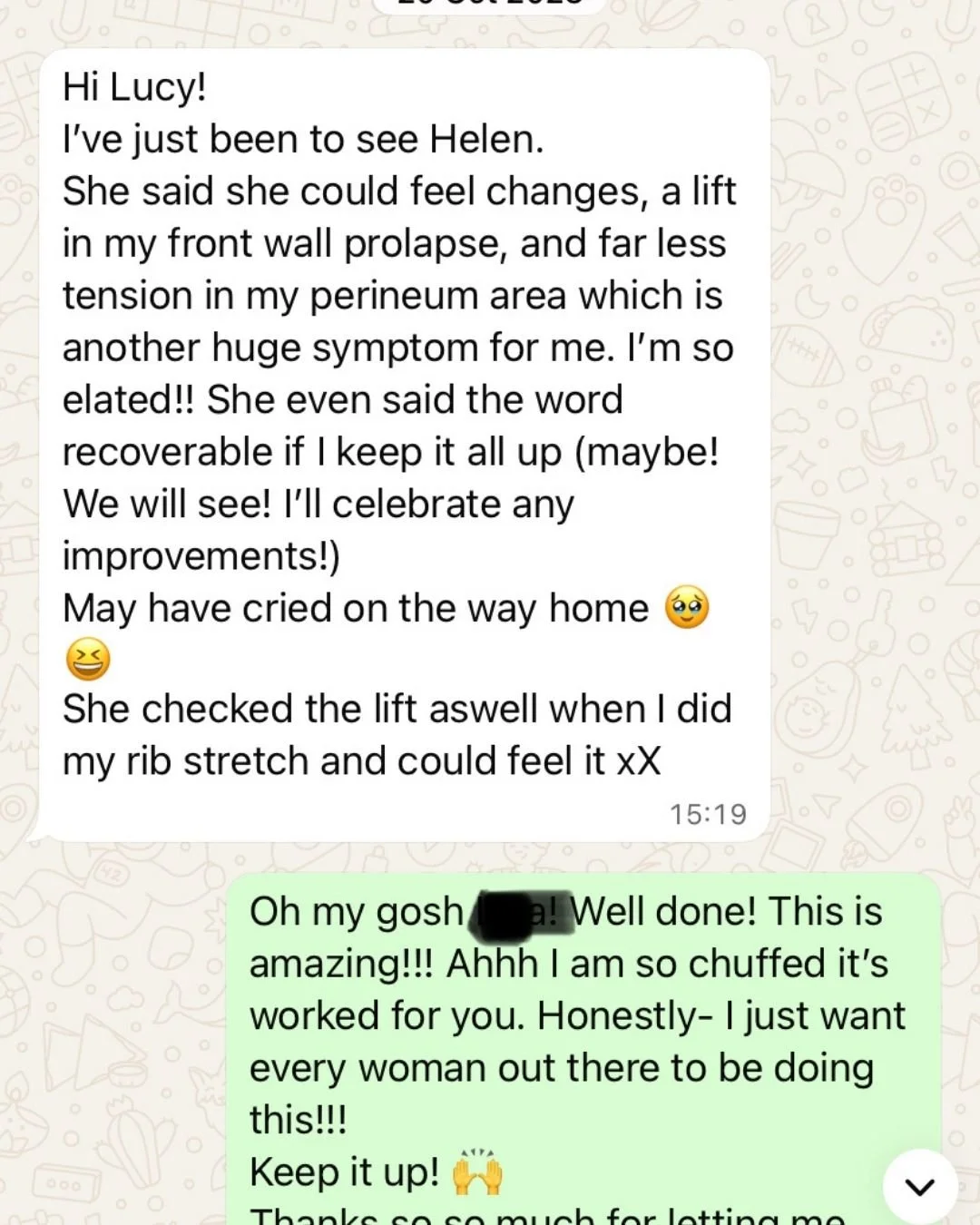 We have a chat. You tell me what's going on, how long you've been dealing with it, what you've tried, what your life looks like. I tell you honestly whether 1:1 is the right fit and what working together would look like. No hard sell, no pressure. Just two women talking about your pelvic floor. 😊 I also give free advice in this chat to implement straight away.