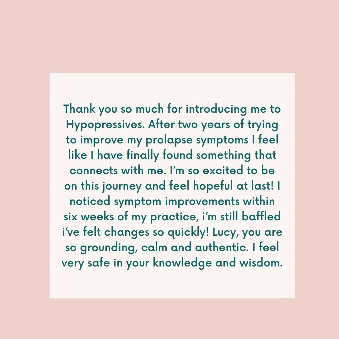 Stress urinary incontinence (leaking when you run, jump, sneeze or laugh), urgency incontinence (not making it to the loo in time), pelvic organ prolapse, diastasis recti, pelvic pain, high or low tone pelvic floor, core weakness, poor posture, breathing dysfunction, hiatus hernia. If you're not sure whether your symptoms are something I can help with, just book a consultation and we'll talk it through.